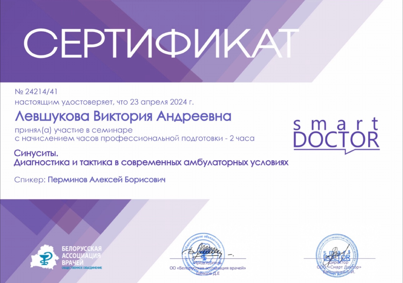 с ноября 2023 - врач-оториноларинголог в мед.центре "А Клиника"