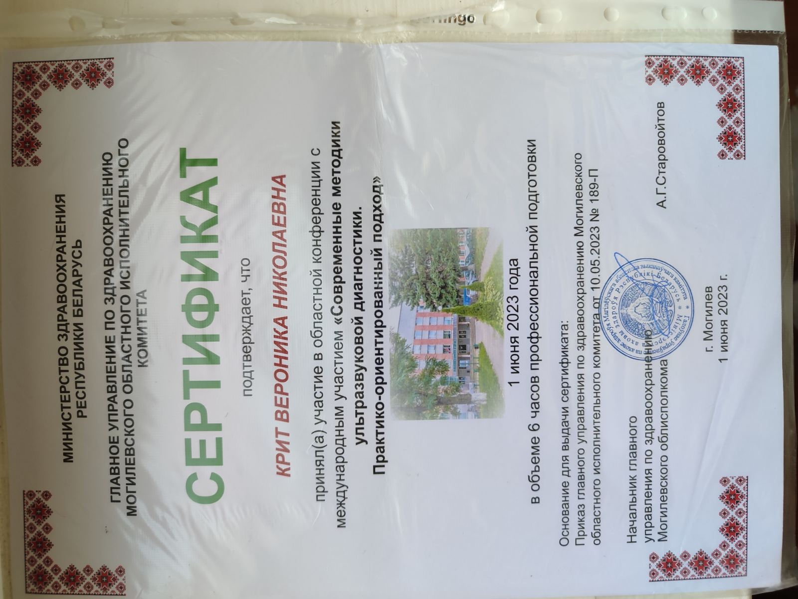 в 2009 г. на базе Белорусской медицинской академии последипломного образования прошла перепоготовку по специальности «Функциональная диагностика»